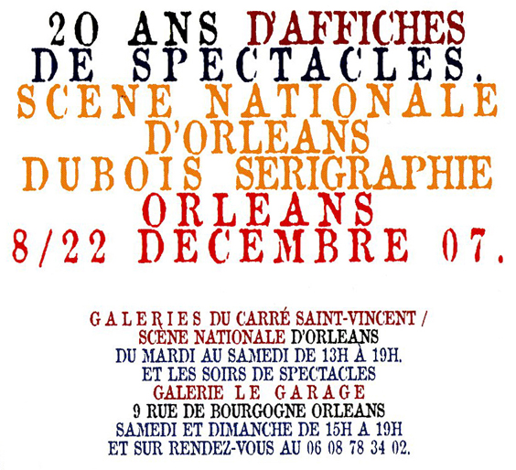 De 1985 à 2005 bien des événements se sont produits qui auraient été aptes à produire un éloignement. Chacun a connu des mutations, Dubois Sérigraphie est devenu Dubois Imageries ; le Centre d’Arts Contemporains est devenu Scène Nationale. Pour se développer l’un a changé de lieu, passant des Montées aux Aulnaies; l’autre a grandi sur place, étoffant sans cesse le Carré Saint-Vincent.