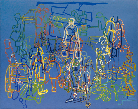 La figuration contemporaine illustrée dans cette exposition par Gérard Guyomard, Gérard Le Cloarec et Vladimir Vélickovic, prolonge aujourd’hui cette volonté d’associer peinture et mouvement. Introduit dans la peinture, le mouvement engendre l’histoire d’une mémoire inscrite sur le tableau, rémanence d’un temps révélé sur la toile, d’une approche du réel où, encore une fois associés, le peintre, le photographe et le cinéaste nous offrent , de ce réel, une beauté mouvante et émouvante.