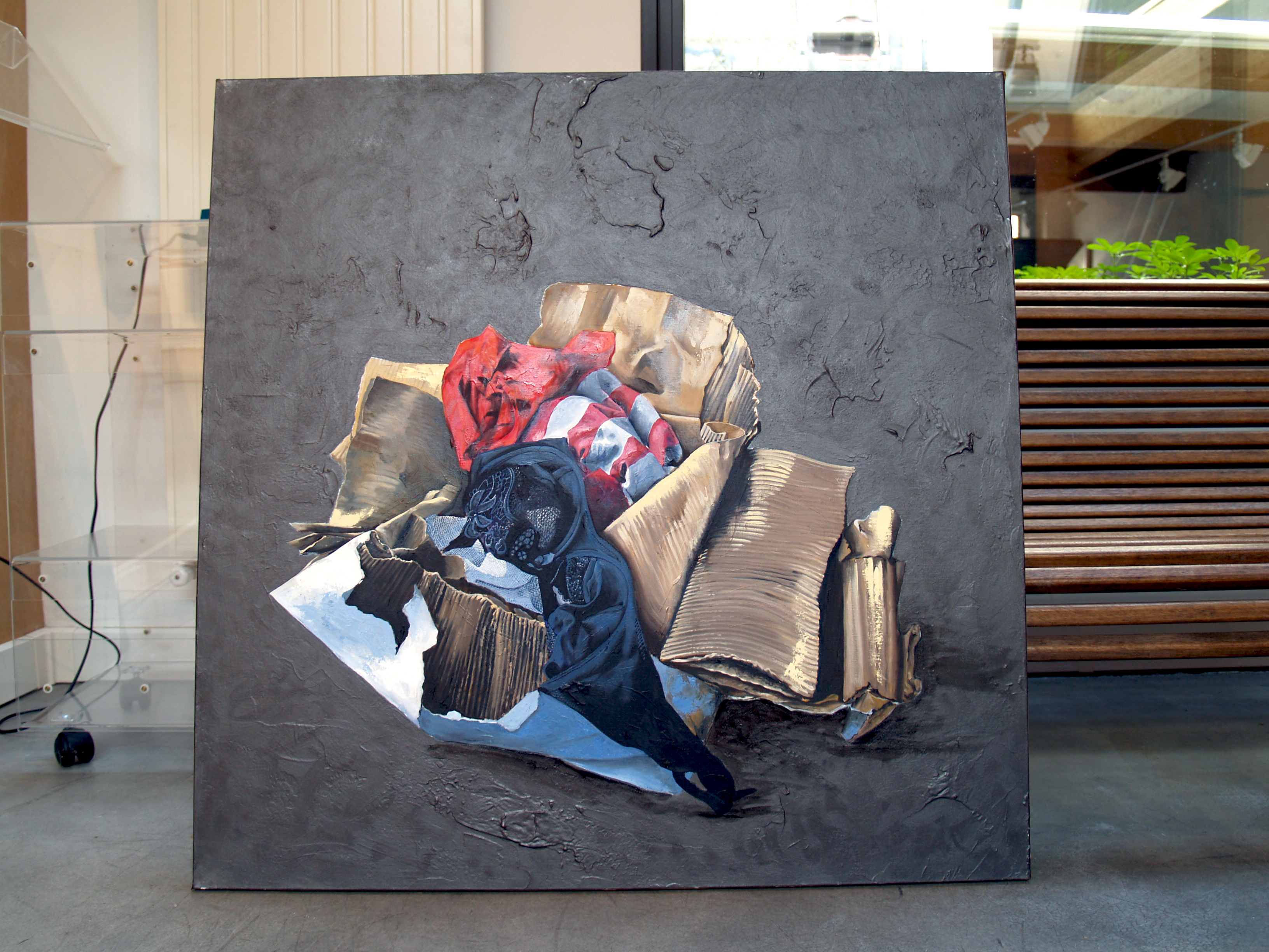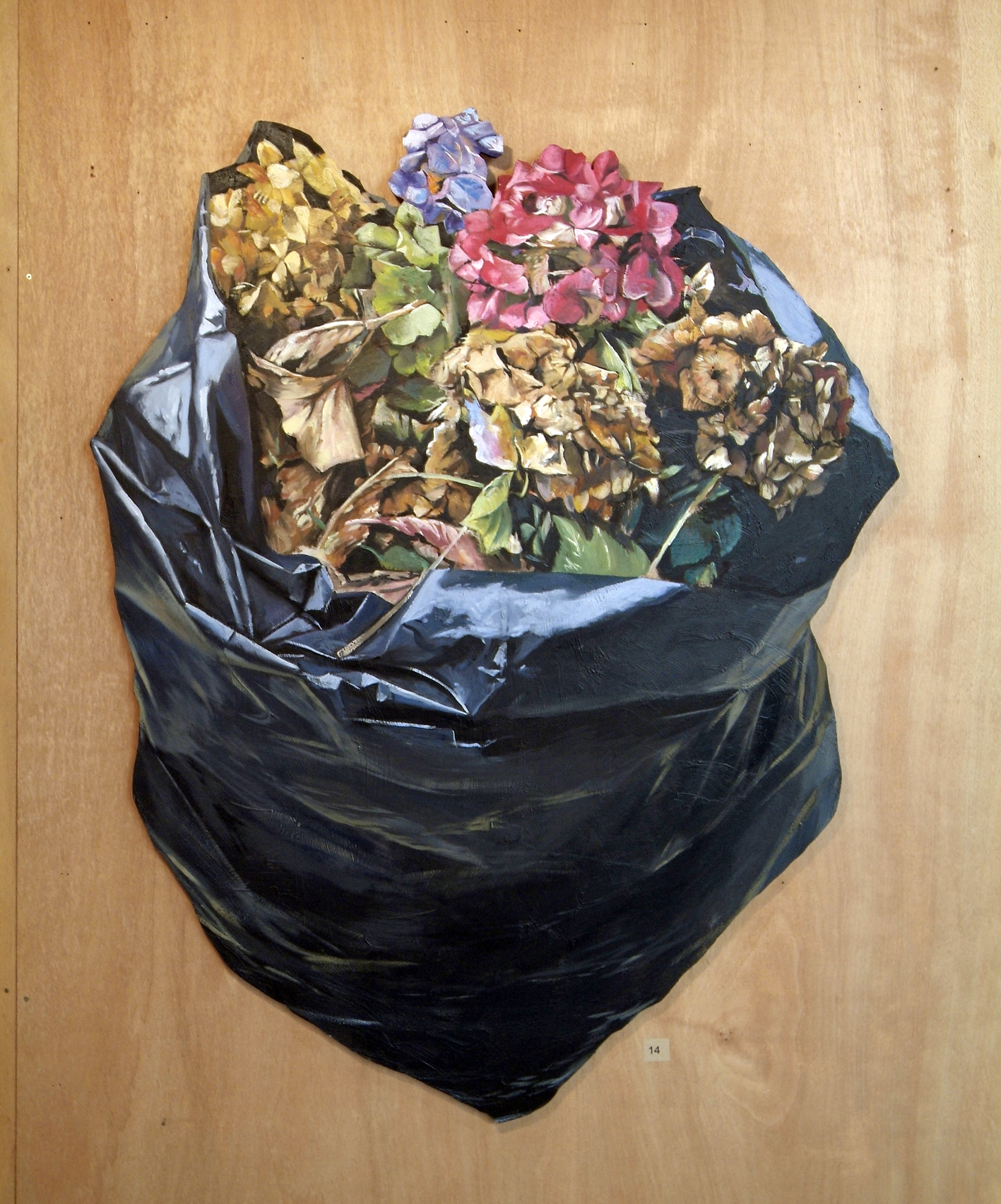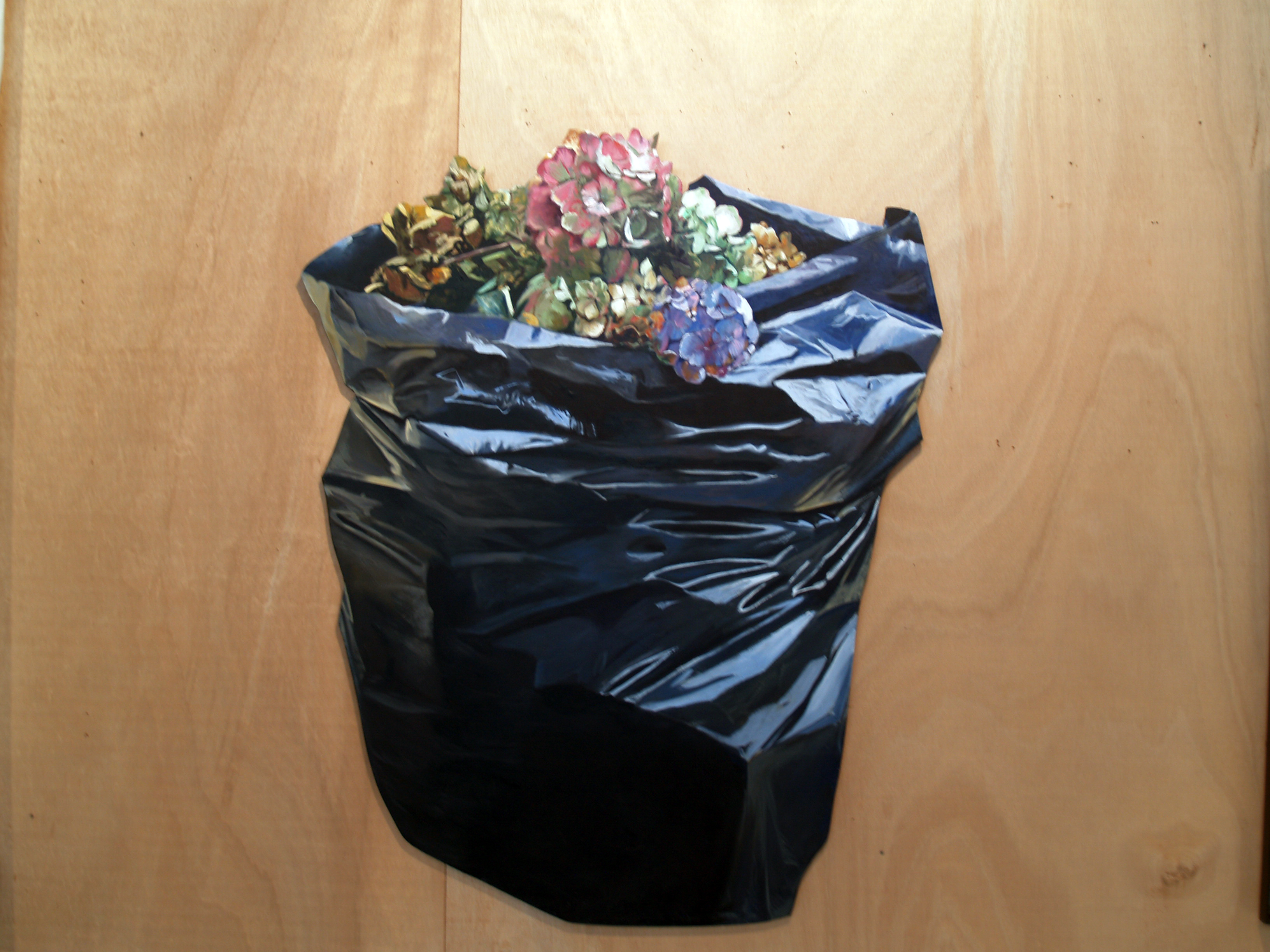 Il enfourne dans son ventre noir les restes des agapes de la société industrielle. La mort ne lui fait pas peur. Au contraire, il vous propose de l’accueillir dans ses flancs. Parfois il est nécessaire de découper la Chose afin de la faire mieux pénétrer. Mais tout est bon pour le nourrir. Faites votre marché à Bagdad, vous trouverez de splendides sacs made in USA vastes et solides, ultime transport des boys. Continuez votre promenade en Bretagne, vous en verrez de jolis qui ont les panses pleines de galettes parfumées au mazout. Certes ces mêmes sacs sont utilisés à la collecte des déchets urbains.