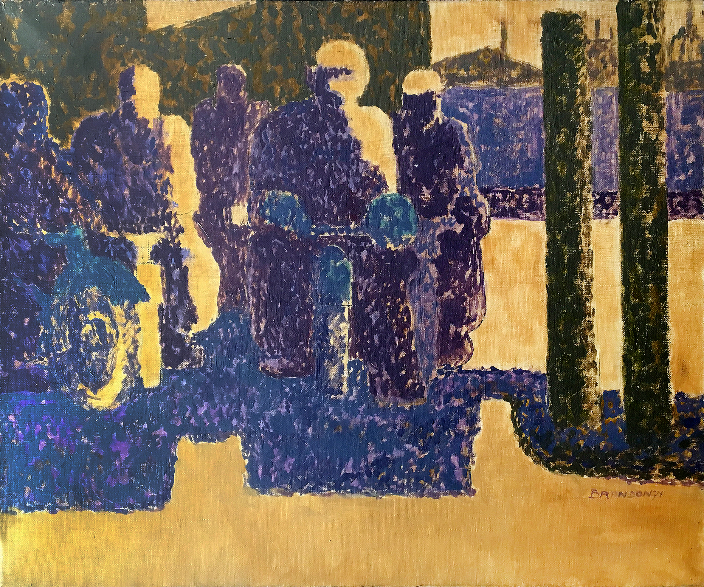 Trois des séries ont été accrochées du 6 au 29 avril à la Galerie Hélène Nougaro à Paris. Michel Dubois montrera, quant à lui, des pièces extraites des sept séries qui couvrent la décennie. Dès le début, Brandon peint ce qui l’entoure. Or, près de Francheville, il y a des plages, une usine – la SMN, des églises, mais aussi des vaches. Ce seront donc ses premières inspirations : « Les plages » (1970-1971), « Sorties d’usines » (1971-1972), « Sorties d’église » (1972-1973), « Portraits de vaches » (1976) suivi par « Les abattoirs » parce qu’un copain y travaille. Viendra ensuite une première série sur le rugby (1977) et en 1978, « La Plaza Mayor de Madrid, jeux de pouvoir entre l’ombre et la lumière ».