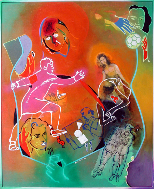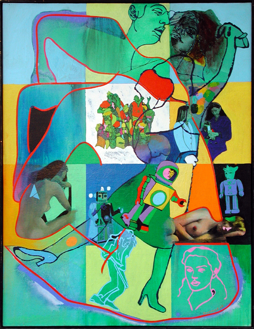 Véritable zapping érotique à travers les métaphores qui font sens et les signes intimes empruntés à sa libido, son oeuvre instaure un état de nonsense où les ajouts improvisés, les superpositions, les transpositions métaphysiques, les graffitis ironiques, les entrelacs pornographiques jouent à dynamiter la forme.