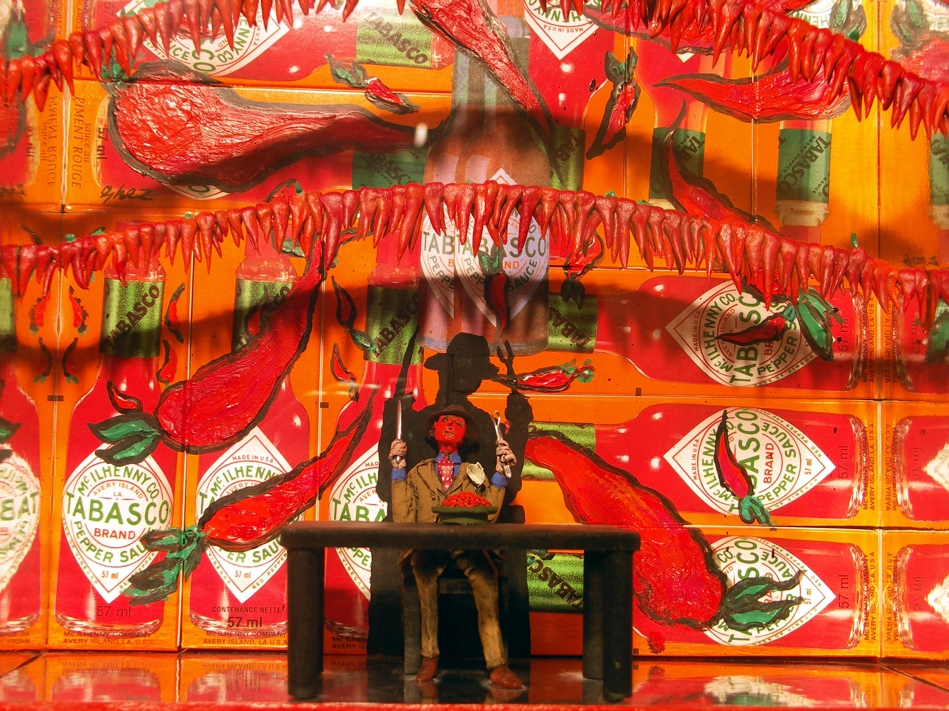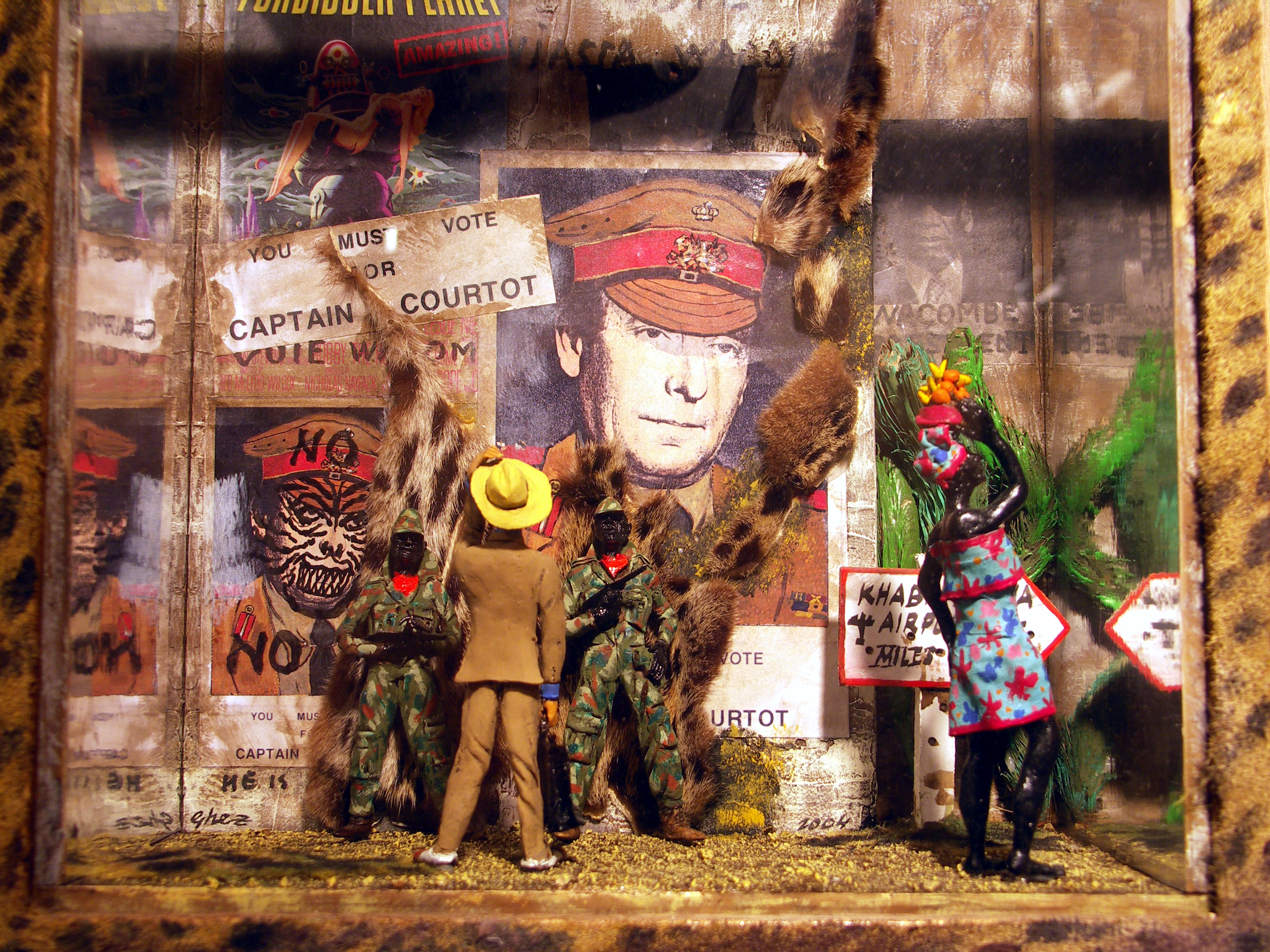 Artiste français, c’est par ses boîtes qu’il attire l’attention au début des années soixante dix. Il y installe personnages et décors miniaturisés qu’il réalise et peint lui-même, d’un théâtre tout intérieur dévoilant les épisodes successifs d’une sorte d’autobiographie dans laquelle l’imaginaire tient le premier rôle. Les références à certains films hollywoodiens y côtoient un dandysme déclaré aussi bien que des allusions à des textes (Roussel) ou des lieux, visités ou non (de Naples à l’Inde, plus fantasmée que réelle, des Trois lanciers du Bengale…). Le verre de chaque boîte – qui est également châsse – donne à voir en tenant à distance : GHEZ transfère des aventures sur un double outrageusement britannique, Lord Dartwood, en sorte que toute confession déclarée devient un piège labyrinthique où le vrai et le faux, le vécu et l’imaginaire sont indissociables. Dans un tel jeu de fausses pistes, la seule certitude est celle d’une poésie émanant de l’anecdote la plus hermétique.