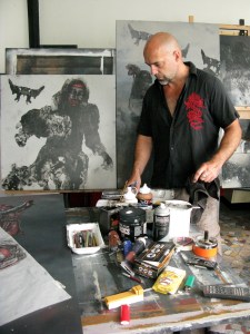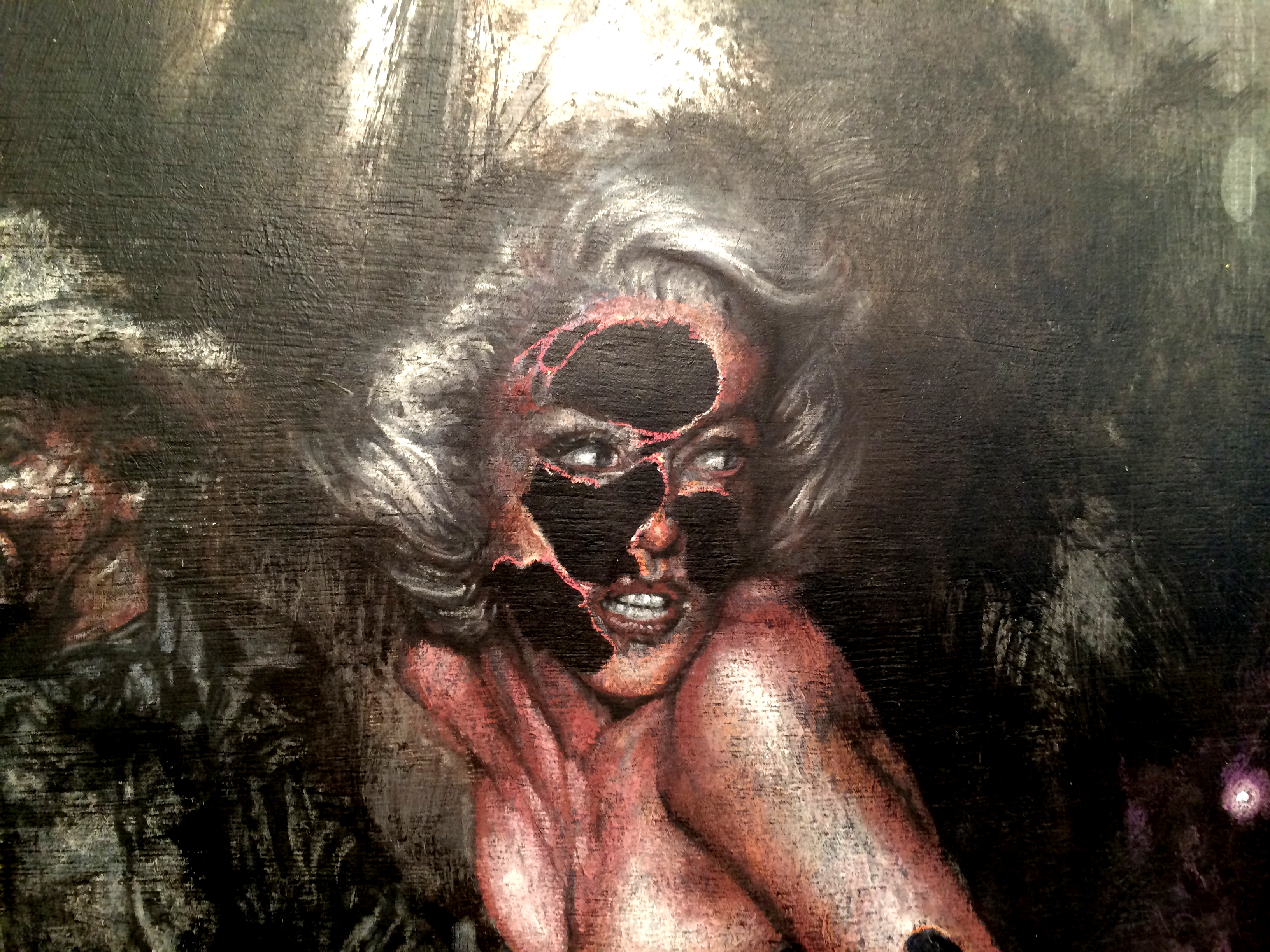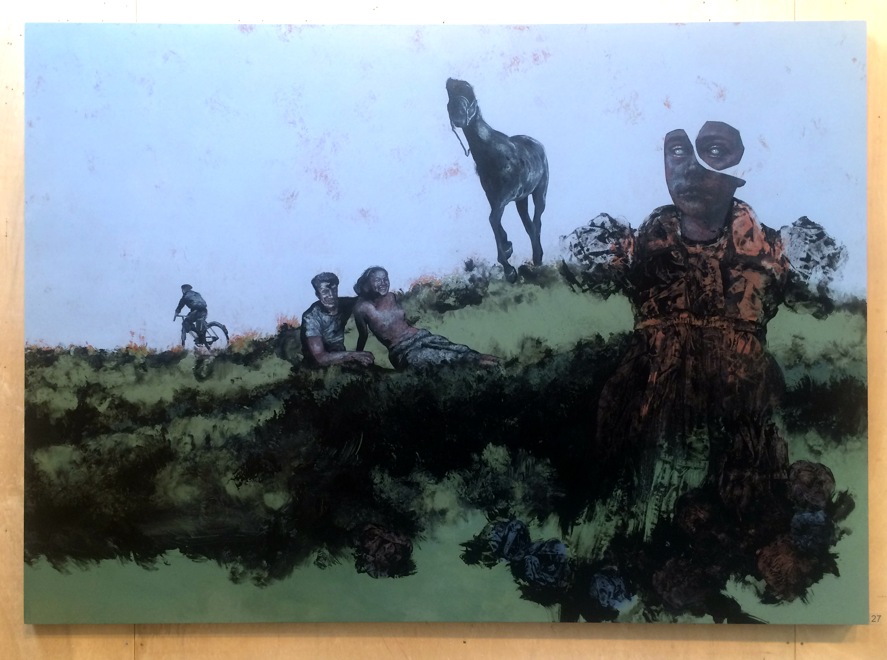 Cowboys défraichis, Maryline en résine, icones et étoiles d’intérieur surgissent et disparaissent au coin des souvenirs d’enfance, au croisement d’un village ou sur le rebord du tapis d’un salon, traçant un méridien entre hier et aujourd’hui. “Je ne peins pas ce que je vois, je peins le coup que je reçois”, écrivait Nicolas de Stael. Coups, traces, odeurs, empreintes, réminiscences, pertes, oublis, caresses et morsures, Je les détoure un par un. Les enlève à leur univers et les transfère dans le mien. C’est alors qu’au gré de tous ces tours et Détours de tête, Je commence à peindre mon île.