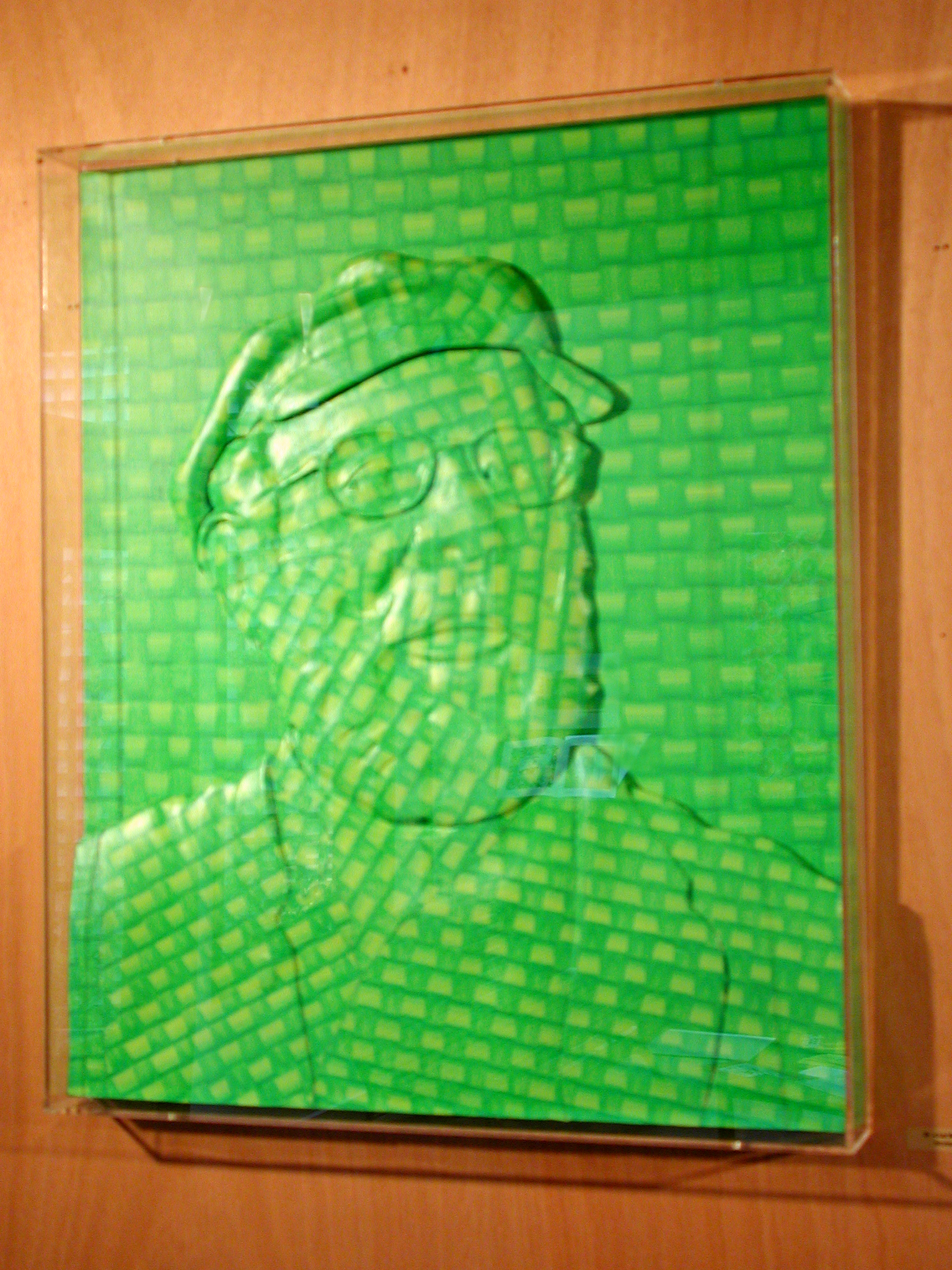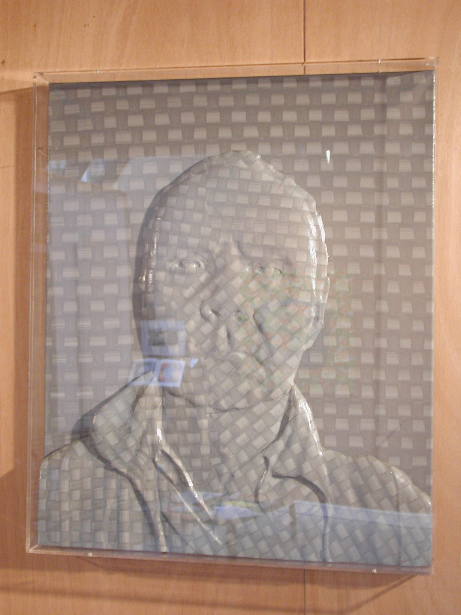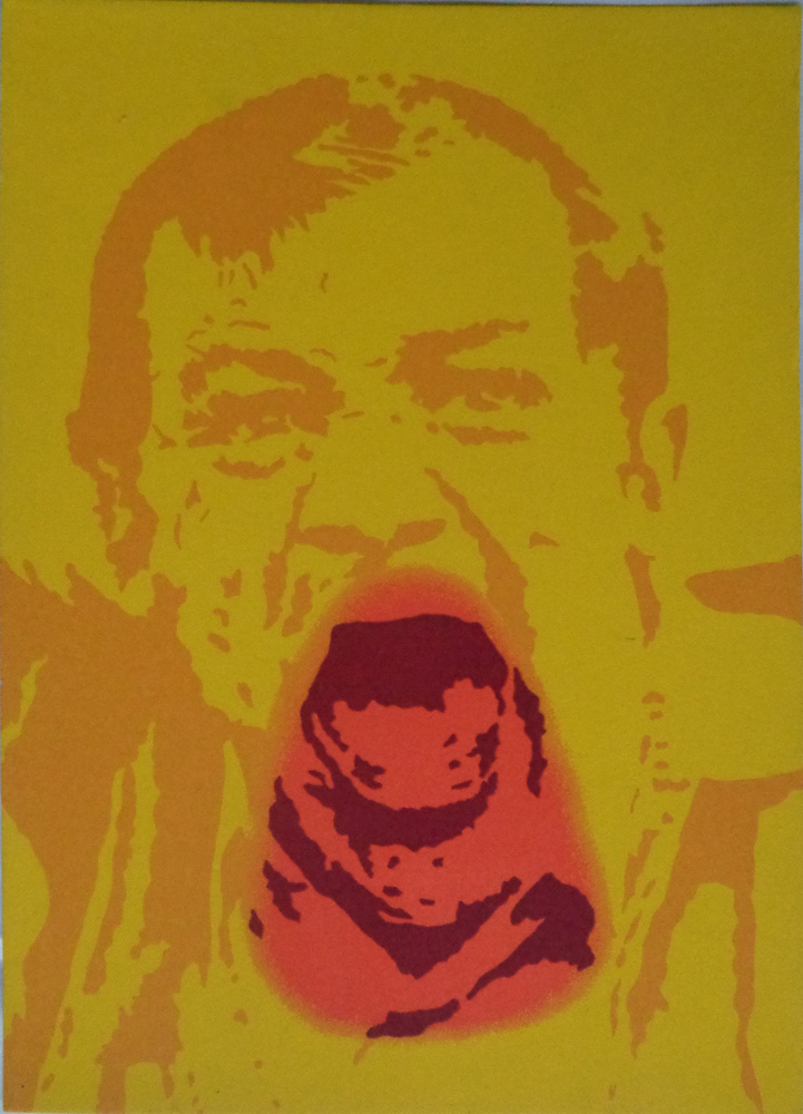 Dans la série des « portraits », Ivan Messac représente le visage de personnages « illustres », connus des amateurs d’art, ou (et) faisant partie de son univers intime. Il maroufle ces « bas relief » en monochrome, à la manière d’un papier peint. Et comme pour tromper le spectateur, il titre ses œuvres de phrases anodines, se rapportant à la couleur. Parfois celui-ci apparaît comme un clin d’œil à l’artiste représenté, comme pour le portrait de Jacques Monory intitulé « Le Grand Bleu » ; d’autres fois il s’annonce comme le nom d’un produit publicitaire dont le portrait en serait l’égérie : « Pschitt citron ». Il crée ainsi une icône qu’il vulgarise, comme une ironie sur la starisation ou l’anonymat que peuvent connaître les « grands » de ce monde.