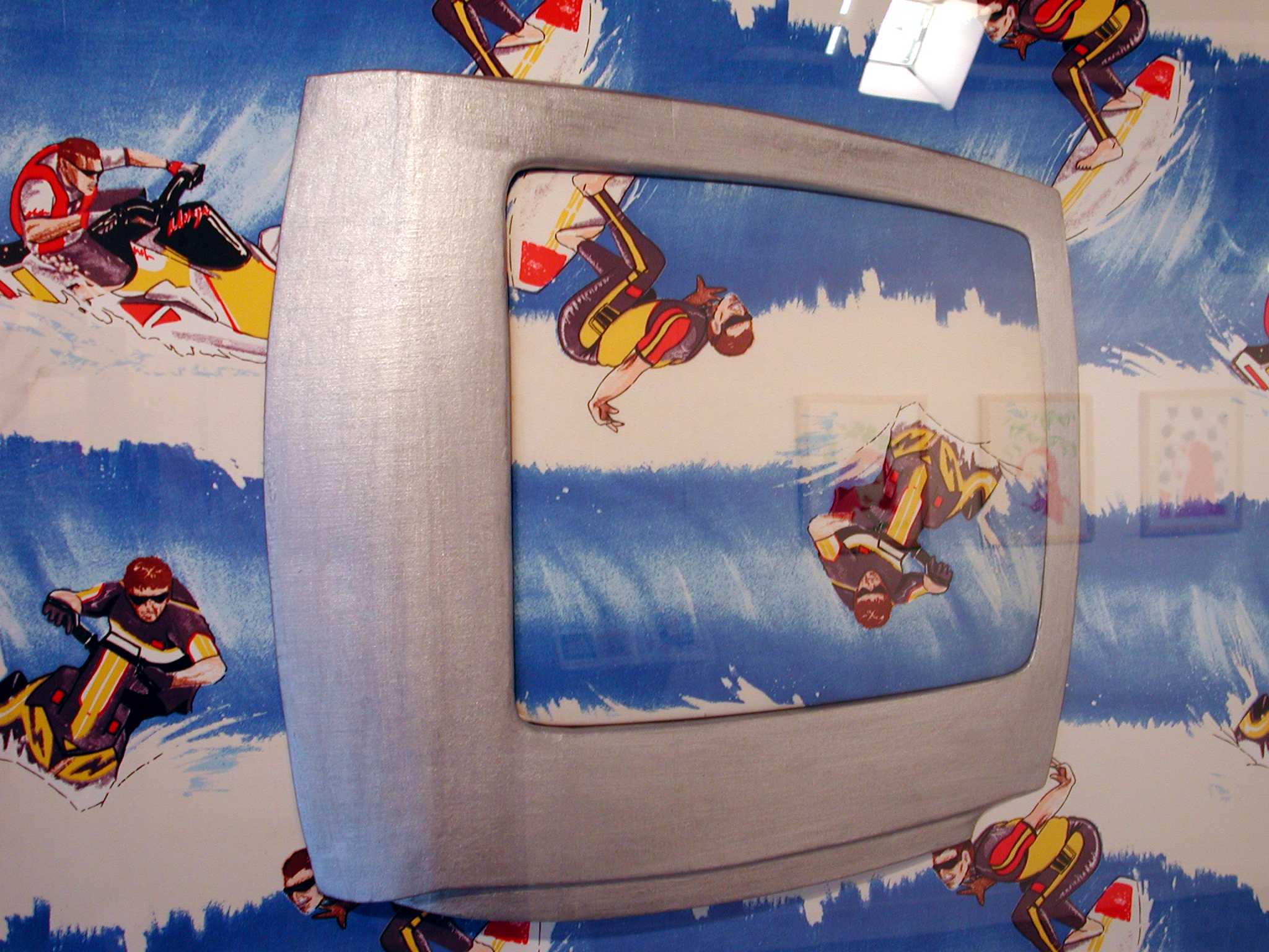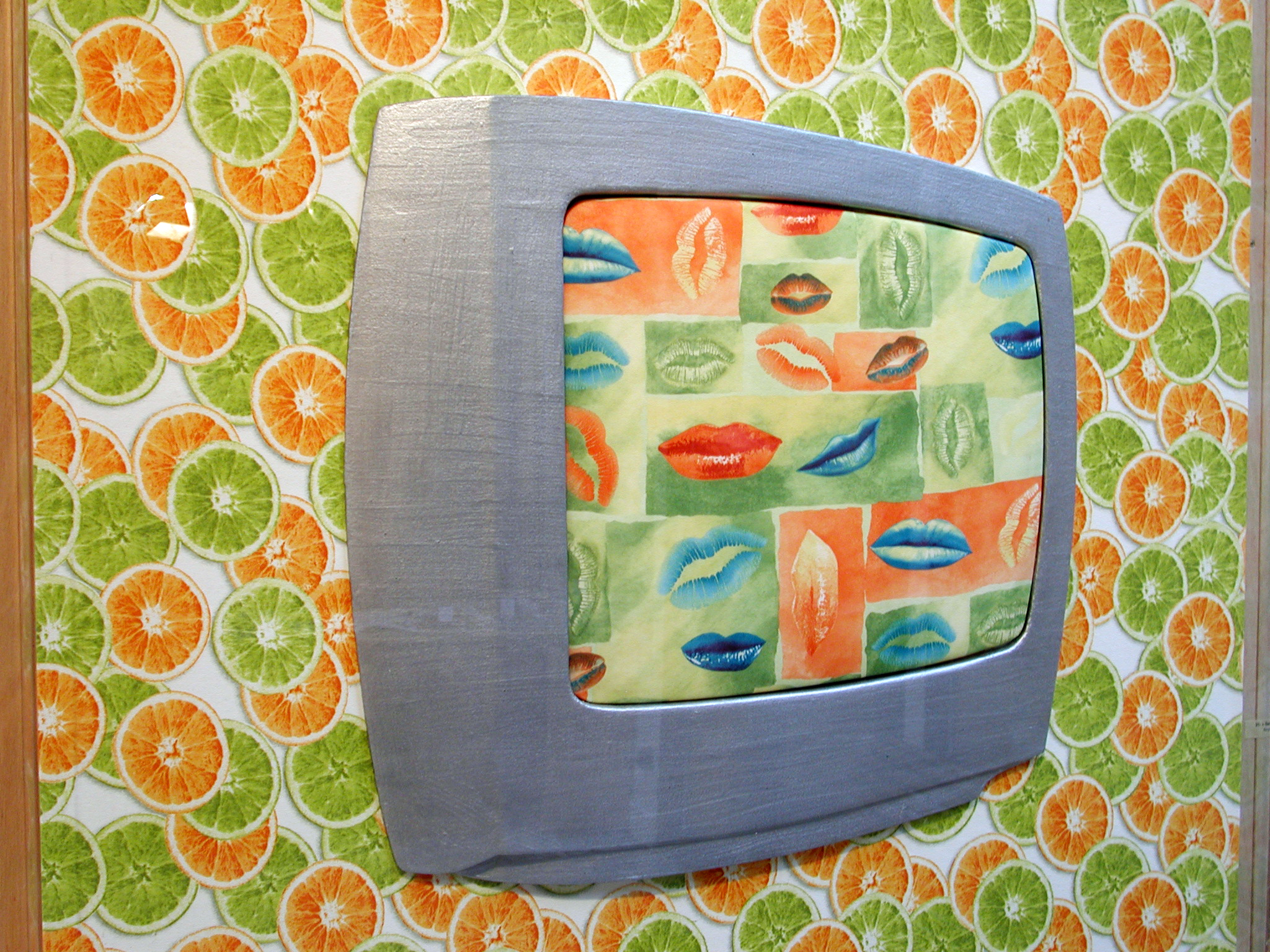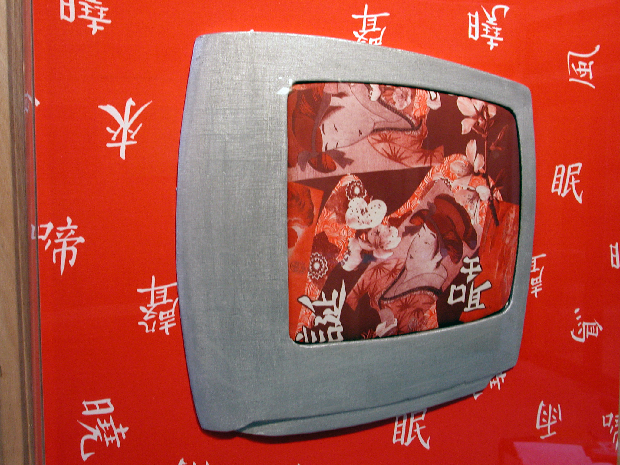 La série des « télévisions » peut être lue comme une réflexion face aux médias, diffusant tantôt des images édulcorées, tantôt des clichés plus catastrophiques rangés dans la catégorie des faits divers ; nous renvoyant à la société de consommation … d’images. Mais il y a également dans ces tableaux, un retour à l’intime, la mire nous montre les stars que nous admirons depuis notre canapé. L’artiste nous donne l’impression d’entrer dans notre univers proche, il se sert de nos « outils » du quotidien, pour nous parler de nos propres références, induites par la télévision. Un face à face entre ce que nous renvoie notre univers et celui de l’extérieur que nous visionnons en spectateur. Dans le monde actuel, la réalité de l’image devient plus importante que l’évènement lui-même. On est spectateur d’un monde presque virtuel. Autrefois, on était fasciné et ému devant un tableau de Claude Monet, aujourd’hui l’ « Impression soleil levant » devient l’ « Impression » en « Prime Time », la fascination est dans la mire.