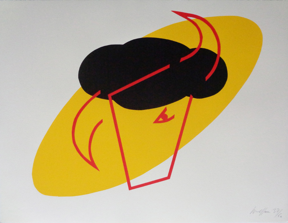 Entre temps pendant les années 80 et 90, alors que son travail pictural s’éloigne de la Figuration narrative et se rapproche d’abord de l’abstraction puis l’entraine vers la sculpture, il s’approprie la lithographie (Péripéties de l’étoile rouge, 1983) et poursuit ses recherches par le biais de la linogravure (Orage dans la galaxie du 2, 1983). Dans la décennie suivante, alors qu’il se consacre à la sculpture à Carrare, la Stamperia del Bostrico (Savone) lui donne l’opportunité d’aborder l’eau forte comme en témoigne la très belle gravure (2002) en 27 exemplaires présentée dans l’exposition.