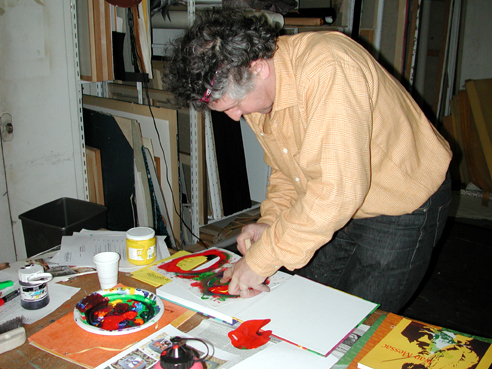 Avant de devenir galeriste, Michel Dubois a été sérigraphe. Quant à Ivan Messac, nous savons qu’il a réalisé de nombreuses estampes avec cette technique dans les années 70. Dès 1971, parallèlement à sa série Minorité Absolue, trois sérigraphies éponymes sont publiées et figurent aujourd’hui sur les murs de la galerie. Suivra en 1972 l’album, Les Chieurs, qui fut édité sous le titre policé : Les Enfants Polychromes. Durant ces années les éditions s’enchaînent en France comme en Italie, où l’artiste développe une technique mixte qui mêle sérigraphie et linogravure Nous n’avons que nos mains, éditée en 1974 à Rome par Il Torchio Romano. Néanmoins, la sérigraphie, dont il a appris les rudiments auprès de Merri Jolivet et d’Eric Seydoux dans l’atelier de Guy Rougemont, reste la technique de la plupart de ses multiples avant l’arrivée du numérique.