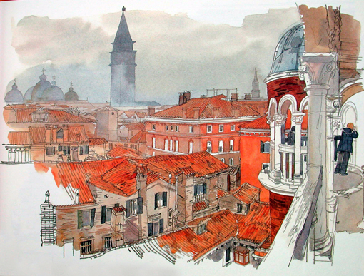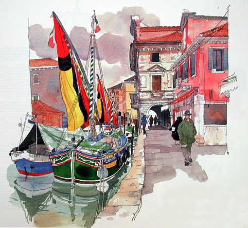 Né à blois en 1962, Fabrice Moireau est diplômé de l’Ecole nationale supérieure des Arts appliqués et des Métiers d’Art. Aquarelliste, scénographe, archéologue à ses heures et auteur de livres illustrés, Fabrice touche à tout, même s’il prétend ne pas savoir faire autre chose que dessiner. De ses nombreux voyages, il rapporte des carnets de croquis qui sont de vrais témoignages culturels et ethnographiques. Passionné par le patrimoine architectural, les jardins et les plantes, sa quête permanente est de traduire, par l’aquarelle, la subtilité des jeux de lumière et de transmettre l’atmosphère d’une rue, d’un paysage, d’un cours d’eau… « Dessiner, c’est prendre le temps de ressentir un lieu pour lier un contact avec les gens, c’est aussi regarder en détail un bâtiment ou un plat de sushis pour mieux les mémoriser. Il n’y a pas de recherche plastique dans mes carnets. » Cette modestie qui le caractérise, Fabrice l’exprime à travers la délicatesse de ses dessins.