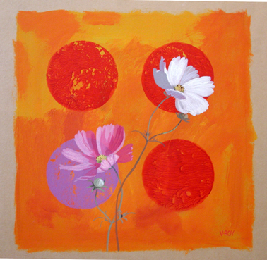 Née en 1965 à Alger, depuis sa plus tendre enfance, Valérie dessine et peint. De brillantes études à l’école d’Arts appliqués Duperré, une bourse d’études à la Parson’s School de New York lui ont appris à maîtriser création pure et techniques de pointe. De sa petite enfance en Algérie, elle a gardé le goût des couleurs chaudes et des enluminures orientales. Sa palette de couleurs s’inspire aussi du Maroc, de l’Egypte, de la Chine. Car, partout où elle voyage, Valérie croque sur d’innombrables carnets tout ce qui frappe son imagination. « J’ai deux sources principales d’inspiration : mes voyages et les fleurs de mon jardin. Je pense que le lien entre ces deux sources, c’est ma fascination pour la couleur. » Valérie Roy n’a cessé d’approfondir son œuvre personnelle selon une technique parfaitement maîtrisée : elle peint ses motifs sur papier Kraft, à l’acrylique, et les retravaille aux pastels.
